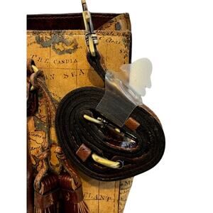 The Patricia Nash Promise European Map Handbag is a stylish satchel/top handle bag made of leather, featuring a detachable shoulder strap for added versatility. Designed for women with a European map-inspired design, this handbag by Patricia Nash offers both functionality and fashion. The detachable strap allows for multiple carrying options, making it a practical and chic accessory for any outfit.