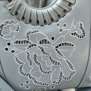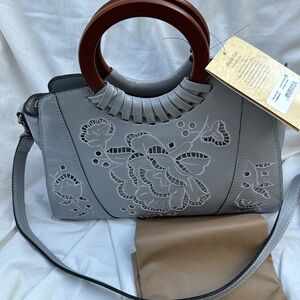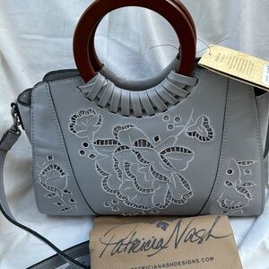 Patricia Nash Fall Lace Leather Lyon Satchel Crossbody Formal Grey