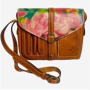 Add a touch of artisan charm to your collection with this gorgeous Patricia Nash–style floral leather crossbody bag. Crafted from rich tan leather with a hand-painted floral flap in pink, green, and gold tones, this bag captures the essence of vintage Italian craftsmanship. The pleated front panel and buckle detail lend a timeless, bohemian feel, perfect for everyday wear or weekend outings.