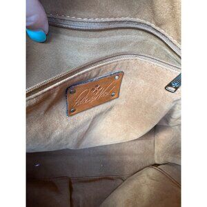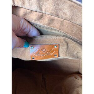 Minor scuffing on the leather base and strap. Top to bottom = 10 inches, width = 13 inches, depth = 4 inches.