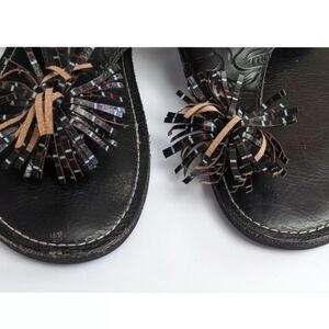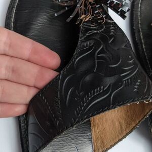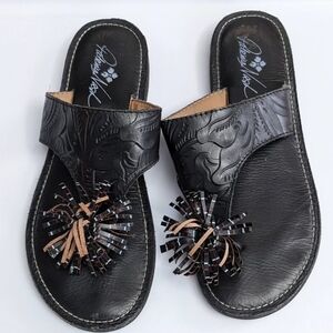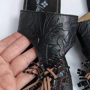 Patricia Nash Franca Tassel Leather Tooled Sandals Black Size 9.