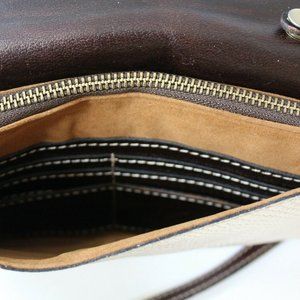 * Interior: front compartment with 6 credit card slots, center zip compartment with 1 zip pocket and 2 slip pockets and a slip pocket behind zip compartment