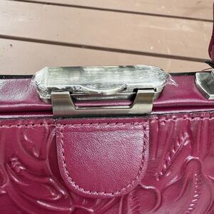 Here is a beautiful Patricia Nash Gracchi Tooled Leather Frame Satchel Crossbody Bag Magenta NWT burnished tooled color collection retails $249.