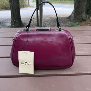 Patricia Nash Gracchi Tooled Leather Frame Satchel Crossbody Bag Magenta NWT