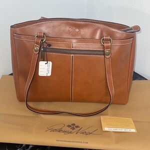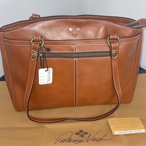 Patricia Nash Heritage Collection Poppy Satchel Leather Bag Tan Brown AUTHENTIC