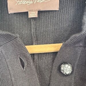 Stylish black knit cape by Patricia Nash. Timeless and versatile. Tassel around the hood/ neck area.