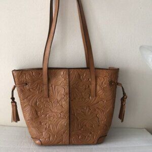 Patricia Nash Kemble Tote Biscuit Brown Tooled Leather Shoulder Handbag