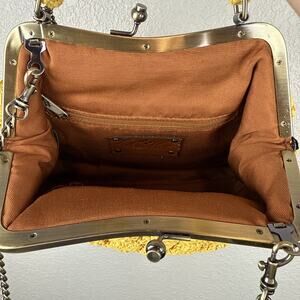 Patricia Nash Laureana Frame Satchel Yellow Woven Scallop Raffia Straw Crossbody