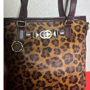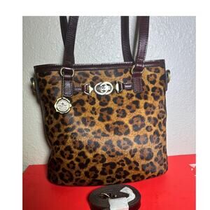 Patricia Nash Leather Lundy Convertible Crossbody Tote Leopard Calf Hair new without tags, long strap included, footed, double strap.
