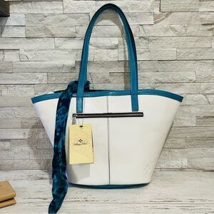 Patricia Nash Leather Marconia Striped Fish Spot Print Tote Bag Matching Scarf