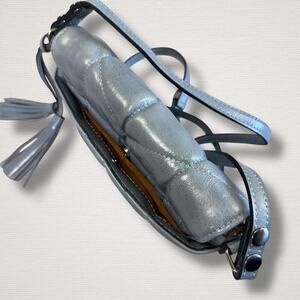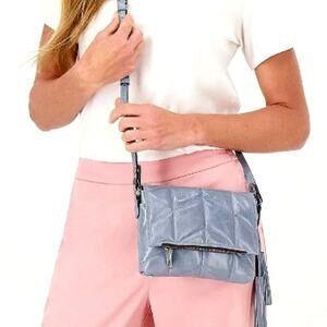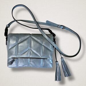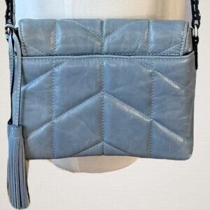 Patricia Nash Leather Oil Waxed Corfu Crossbody Shoulder Bag Quilted Blue Gray