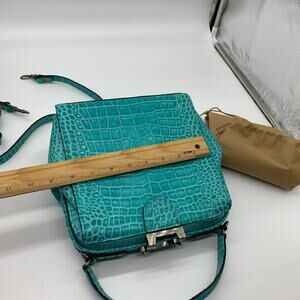 Patricia Nash Leather Purse Croc Embossed Blue Aqua Handbags