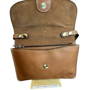 NWT Authentic Patricia Nash Torri Crossbody Bag. Color: Hazelnut. 7.5 x 5 x 2 inches. Small Crossbody with matte finish not the high shine. Detachable and Adjustable Strap with up to 51” Extension. Golden Faux Suede Lined Interior. 2 Main Compartments separated by a Center Zip Pocket Divider. Additional Front Slip Pocket under Flap. Gold Toned Hardware. Front Snap Closure with Faux Buckle on Flap. Exterior Rear Zip Pocket. All Pics by Seller and are the exact item you will receive. Shown on Size 6 for reference. (MSRP $149)