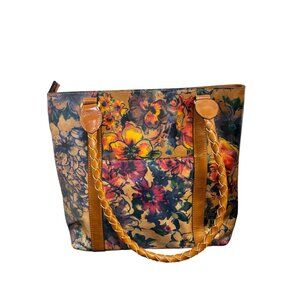 Patricia Nash Leather Tote Purse With Floral Print & Braided Handles