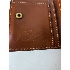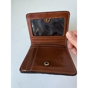 The Patricia Nash Leather Wallet Cardholder in Brown is a stylish and functional accessory for women. Made of high-quality leather with intricate floral patterns, this card wallet features a boho style with a unique coin theme. Designed with credit card slots and a folding design, it is both practical and fashionable, making it the perfect addition to any woman's accessory collection.