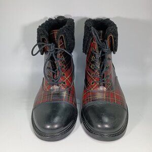 Patricia Nash Lia Cold Weather Booties Black & Red/Plaid w/Shearling Cuffs Sz.8m