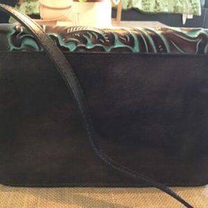 Patricia Nash Locri turquoise brown tooled leather crossbody bag