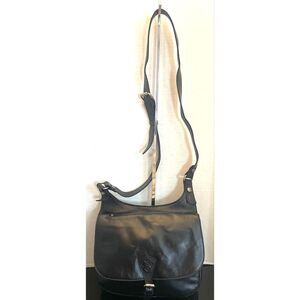 Vintage Distressed Black Leather NEW. Front Flap Magnetic Snap Closure. Signature Lining Multiple Pockets. Silver Hardware.