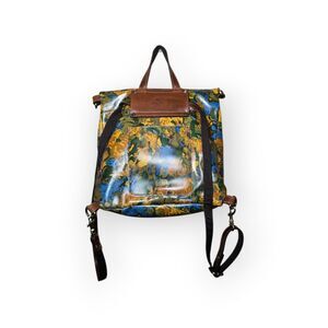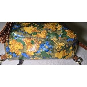 Pre-owned Patricia Nash Luzille Convertible Backpack in great condition. This beautiful and versatile bag features a yellow and blue floral patternoften associated with the Sabina or autumn-inspired prints. Crafted from 100% full-grain leather with a soft faux suede lining, it blends function with signature Patricia Nash vintage styling.