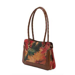 Carry your essentials with style using the Patricia Nash Malvizza satchel. Crafted from luxurious leather in the vibrant Spring Multi print, this bag effortlessly blends practicality and sophistication. Perfect for everyday use, its spacious interior and elegant design will add a touch of refinement to any outfit.