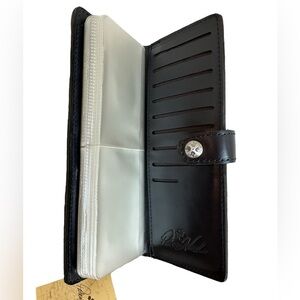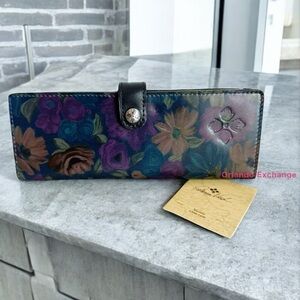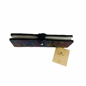NWT Patricia Nash Leather Marotta Card Holder. Width 8” x Height 3”. Multicolored Peruvian Print (Blues, Purple, Green Florals). Snap Button Closure. Brand Logo. 1 interior slip pocket, interior card slots and I.D. Window. Multi Slots each side with pages of Card Holders. All Pics taken by Seller - this is the exact item you will receive with the same pattern placement. Unique item. Price is Firm!