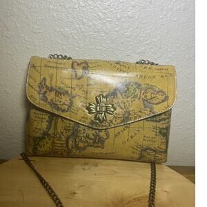 Patricia Nash Meldon Crossbody Shoulder Leather Bag European Map Twist Lock EUC with chain strap. Lining intact and clean, Nice leather sheen. Bag is in excellent used condition.