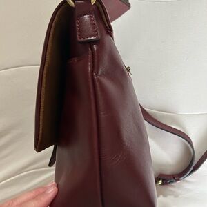 Elegant burgundy leather crossbody bag with gold-tone hardware. Perfect for any occasion. Preowned, very gently used no callouts.