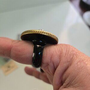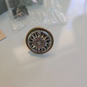 Patricia Nash NWOT Twotone Compass Ring Goldtone Silvertone Black Enamel Size 10