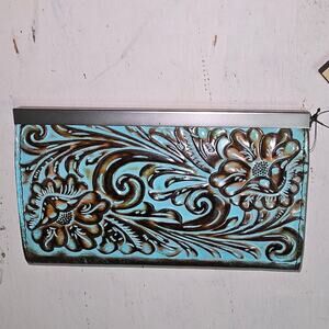 Patricia Nash NWT CAUCHY Wallet Italian Leather Tooled Turquoise Brown NEW