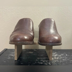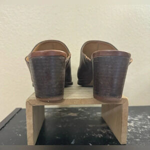 This is a listing for a pair of preowned Patricia Nash Nicia Old World Map Leather Mules Clogs Dark Brown Size 7.5. Good amount of wear on bottoms, light wear otherwise. Please see all photos for details as they are part of the description.