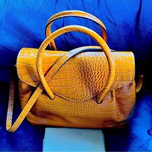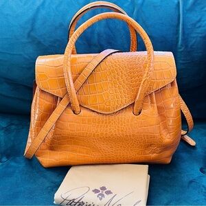 Patricia Nash Notely Croc Embossed Leather Flap Satchel Crossbody Bag