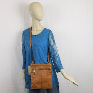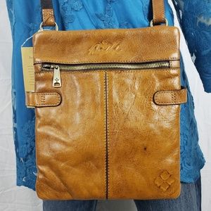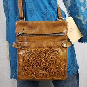 Patricia Nash Prizzi Burnished Gold Tooled Leather Crossbody Purse, Bag