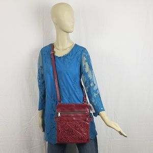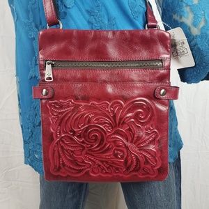 Patricia Nash Prizzi Red Berry Tooled Leather Crossbody Purse, Bag