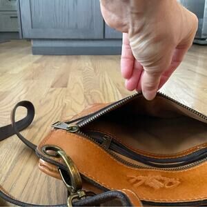 Beautiful Patricia Nash Prizzi Tooled Brown Leather Crossbody Bag EUC! Retail $199. Features tan brown tooled leather with antique brass tone hardware, top magnetic snap zip closure, adjustable leather/canvas crossbody shoulder strap, front zip and magnetic snap pockets, back full length zip pocket. Interior is lined with tan brown suede fabric and has a zip, cellphone, and a multifunction slip pockets. Approx. measurements: 9.5"L X 11"H X 1.5"D. Note: all measurements are+/- 2". Excellent preowned condition.