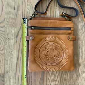 Patricia Nash Prizzi Tooled Brown Leather Crossbody Bag EUC!