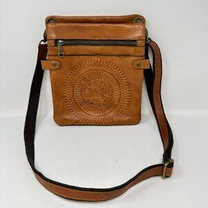 Patricia Nash Prizzi Tooled Leather Crossbody Shoulder Bag Brown