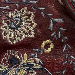 Patricia Nash "Provencal Escape" Embroidered Leather Satchel, burgundy