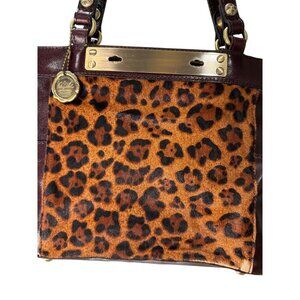 Patricia Nash Rayleigh Leopard Calf Hair Leather Shoulder Tote Tobacco Pre-Owned