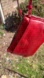• Soft faux fur front in a coordinating red hue