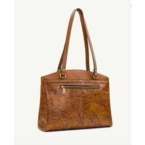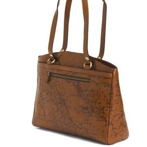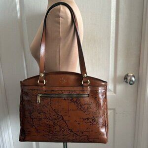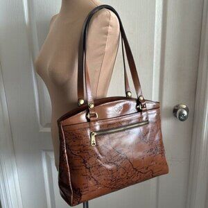 Patricia Nash Riot Rust Leather Poppy Tote Signature Map Brown Shoulder Handbag