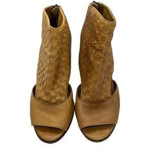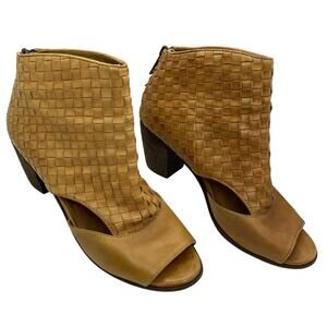 Patricia Nash Rosetta Leather Peep Toe Ankle Boot Booties Cognac Tan size 8.5