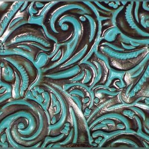 Patricia Nash Rosolini Tooled Leather Saddle Bag in Turquoise & Brown — a stunning, handcrafted piece showcasing the brand’s signature Western artistry.