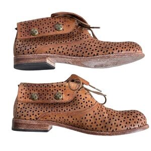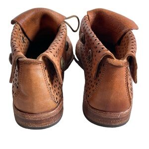 Patricia Nash Sabrina Perforated Ankle Booties Womens Size 7 Tan Foldover Cuffed