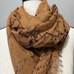 vintage print, renaissance revival, boho, signature map print, scarf, wrap, shawl, y2k, indie, cottagecore, retro, explorer, traveler, earthy tones, academia, nostalgic, historical