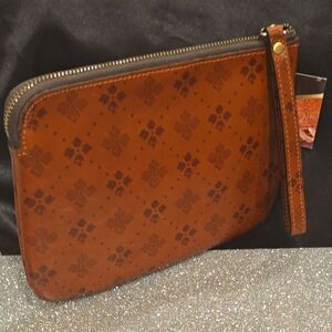 Patricia Nash Signature Print Cassini Wristlet- Tan