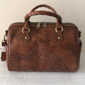 Patricia Nash Skye Speedy Satchel Leather Zip Zip Xbody Sign Map Print Riot Rust