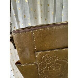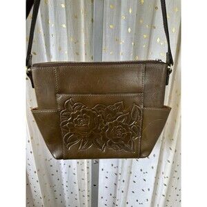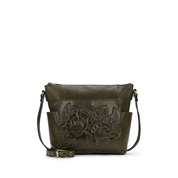 Patricia Nash Soft Olive Aveley Floral Embossed Genuine Leather Crossbody Bag