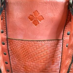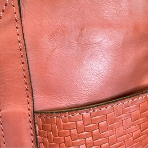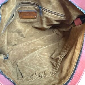 Good used condition. There are some flaws pictured. Possibly pen mark and a scratch’s. I’d say this is a large bag.