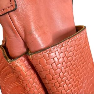 This vibrant orange tote bag features a structured design with a pebbled finish, complemented by gold-toned hardware. It includes both top handles and a detachable crossbody strap for versatile carrying options. Perfect for adding a pop of color to your everyday ensemble.