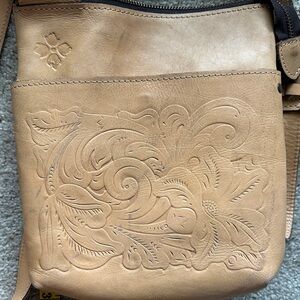 Patricia Nash Tan Crossbody Bag Tooled Floral Leather Classic Minimalist Western